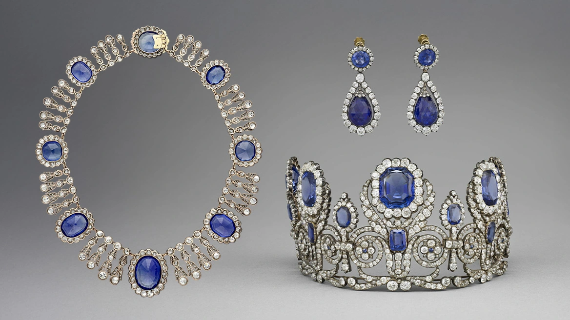 Το χαρακτηριστικό μπλε χρώμα στο συγκεκριμένο σετ οφείλεται στα ζαφείρια Κεϋλάνης.