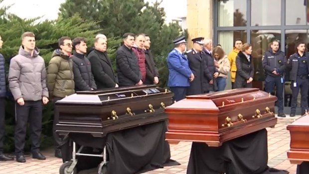 Οι σοροί προς στιγμή βρίσκονται στο αεροδρόμιο της Τιμισοάρα όπου τελείται τρισάγιο για τα αδικοχαμένα παιδιά από τον μητροπολίτη Ιωάννης του Μπανάτ.