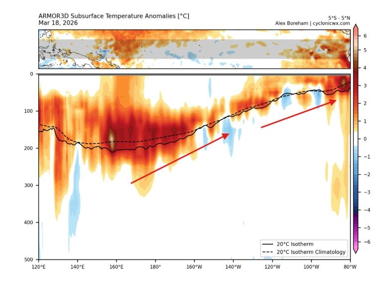 Ιδιαίτερο ενδιαφέρον παρουσιάζει το γεγονός ότι τα υποθαλάσσια θερμά αποθέματα στον Ειρηνικό παραμένουν εξαιρετικά ισχυρά. Αυτό αυξάνει την πιθανότητα το φαινόμενο να ενισχυθεί περαιτέρω προς το φθινόπωρο και τον χειμώνα 2026-2027, φτάνοντας σε επίπεδα «Super El Niño».